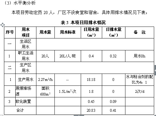 產(chǎn)品方案:本項(xiàng)目生產(chǎn)的型煤規(guī)格為直徑為60mm,厚度為36mm,發(fā)熱量為5800千卡/千克,約為24.36 MJ/kg。
