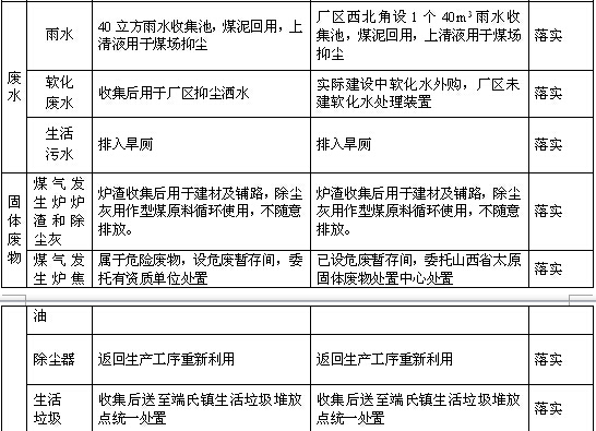(1)要求盡快完成軟化水處理裝置的建設(shè)。對出廠與端氏煤礦運(yùn)矸路之間的道路進(jìn)行全部硬化。加強(qiáng)廠區(qū)綠化工作。